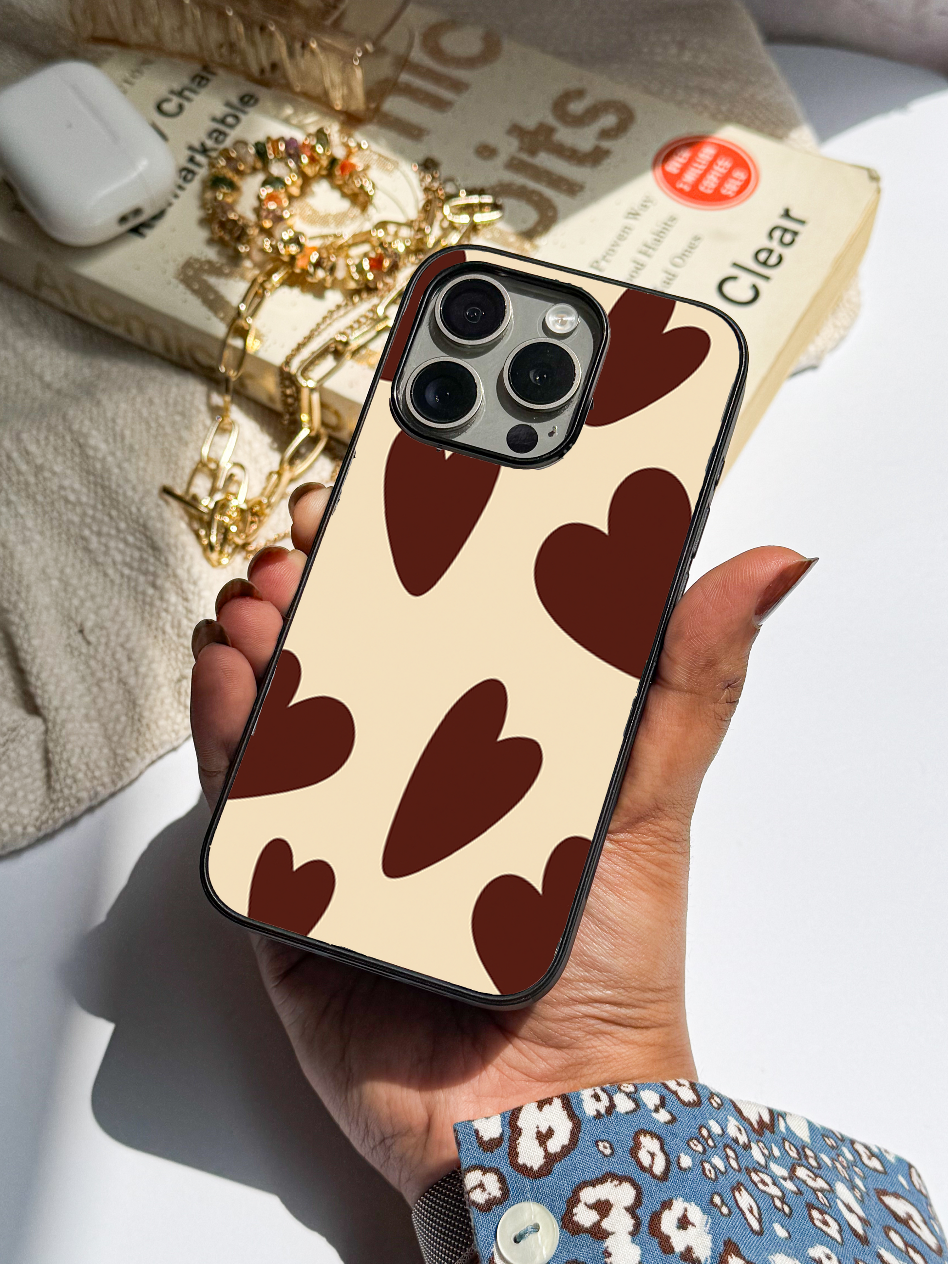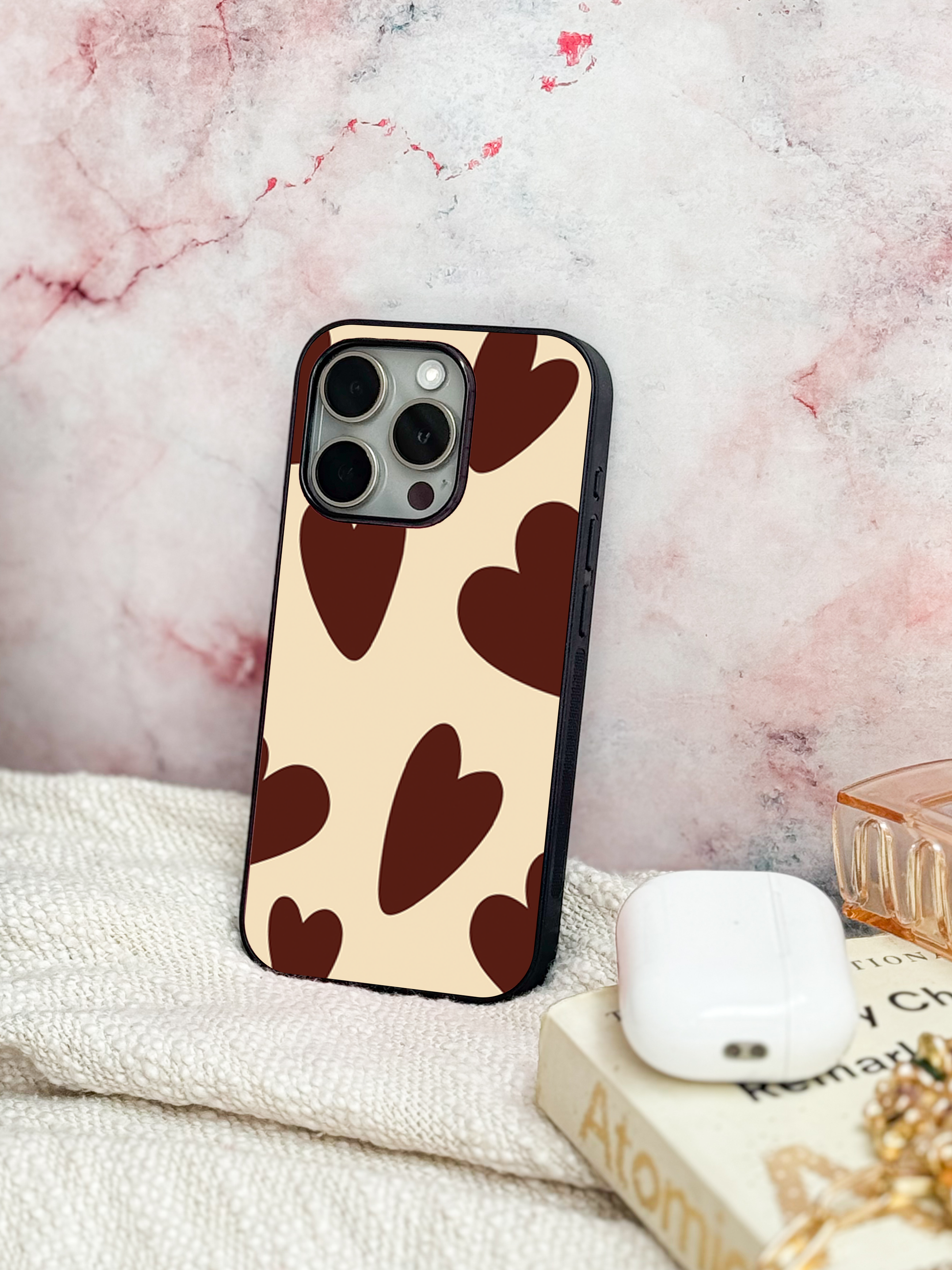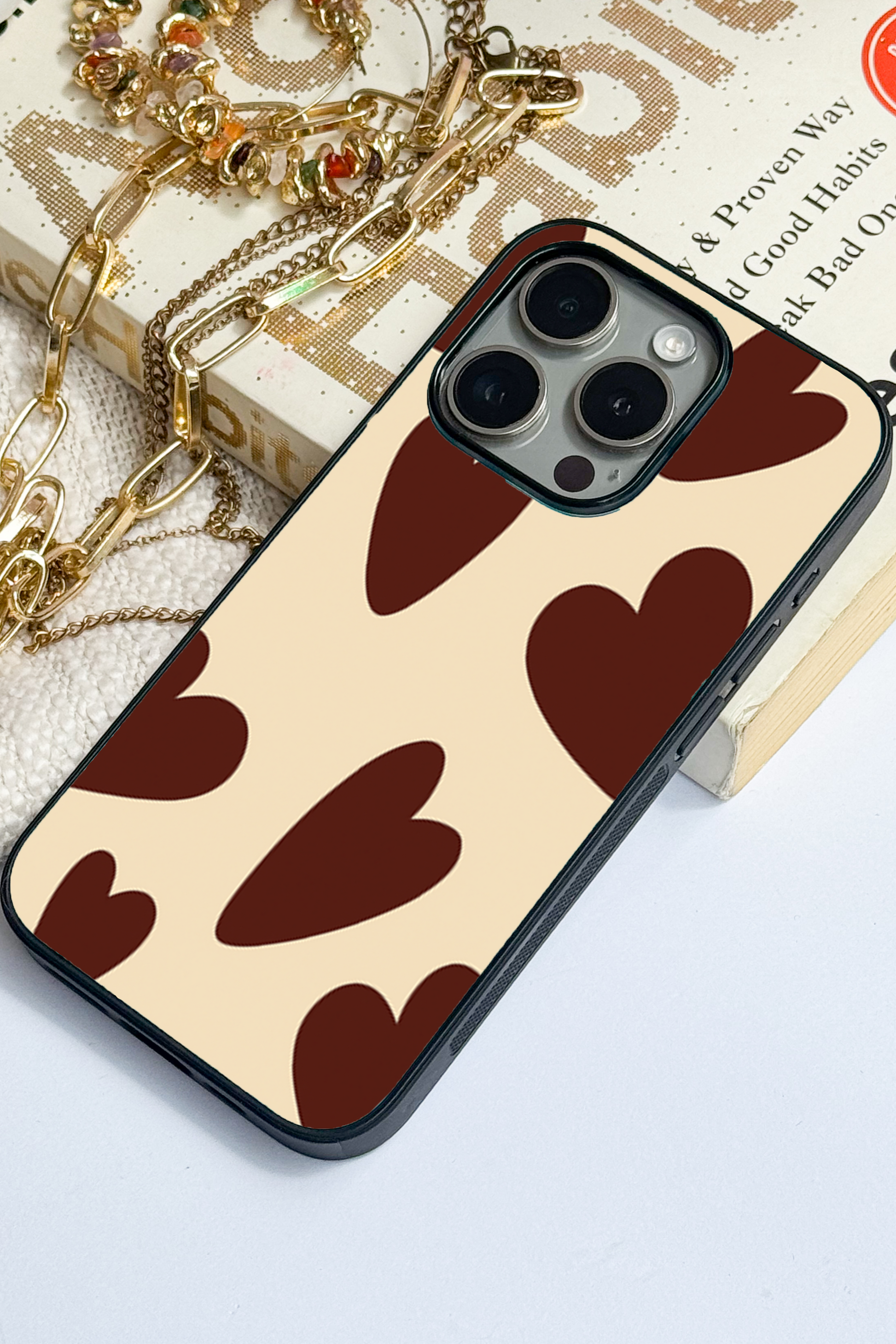 Chocolate Hearts Premium Glass Back Cover For iPhone 11,12,13,14,15,16 Models