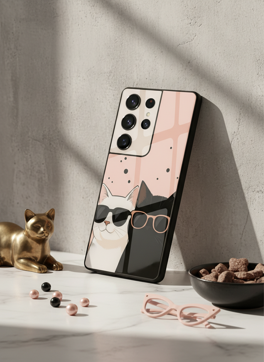 Cool Cats Premium Glass Back Cover For Galaxy S, A, M & F Series