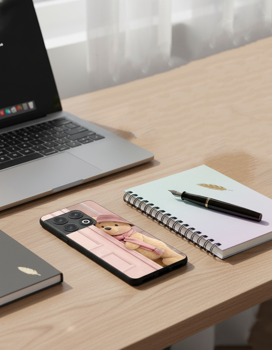 Cozy Teddy Glass Back Cover For One Plus 13, 12, 11, 10, Nord Series