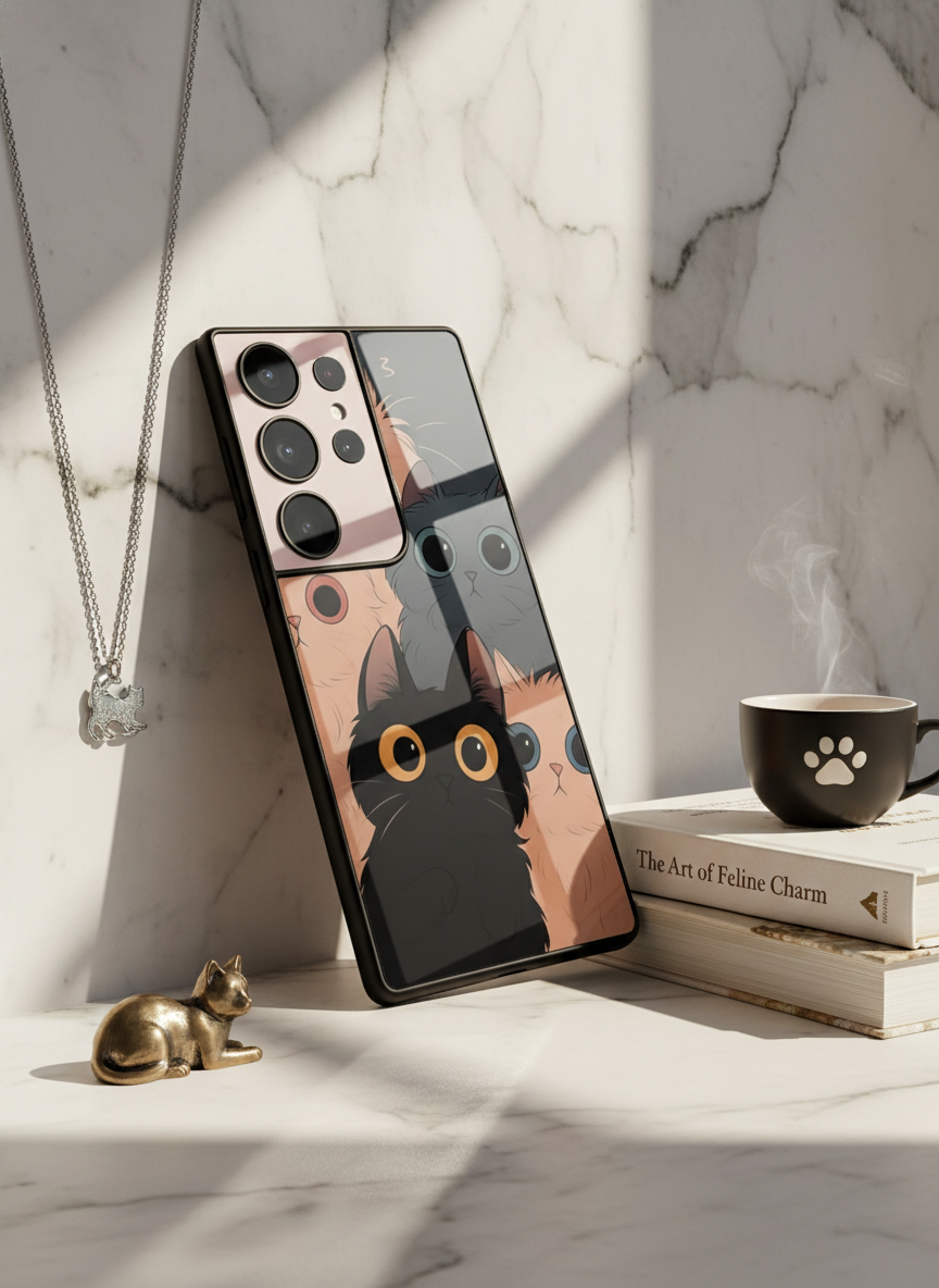 Kitty Mania Premium Glass Back Cover For Galaxy S, A, M & F Series