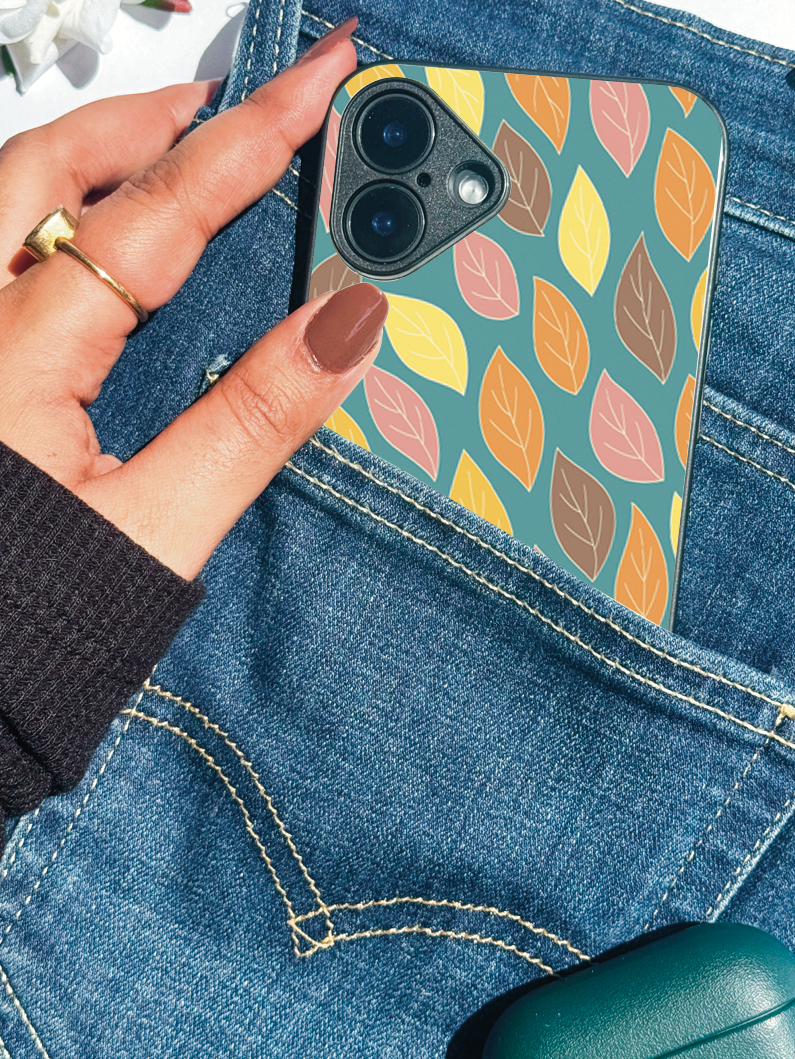 Leaf Pattern Premium Glass Back Cover For iPhone 11,12,13,14,15,16 Models