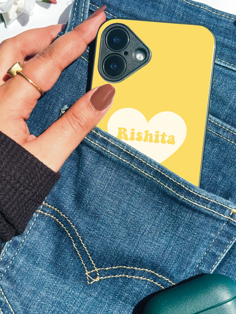 Sunny Heart Personalised Name Premium Glass Back Cover For iPhone 11,12,13,14,15,16 Models