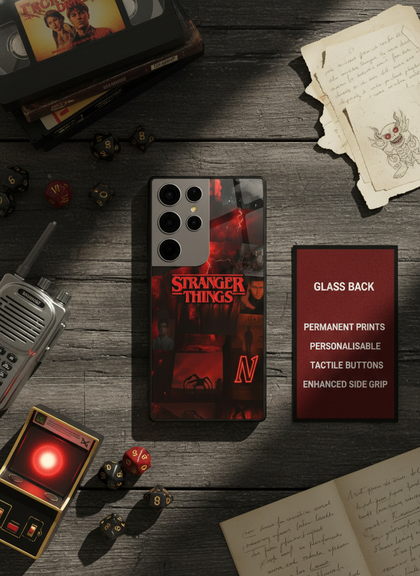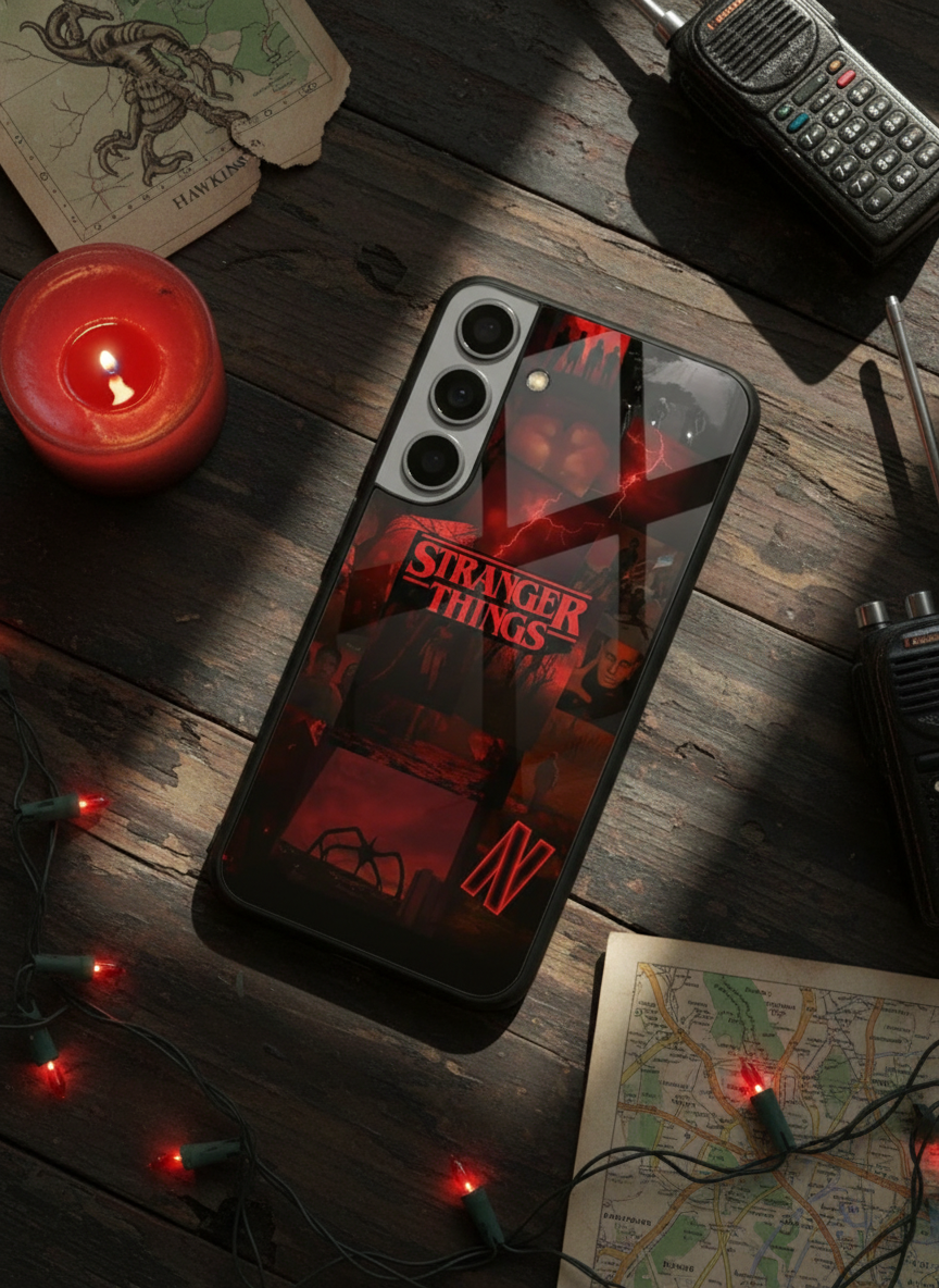 STRANGER THINGS- Red Realm Edit Premium Glass Back Cover For Galaxy S, A, M & F Series